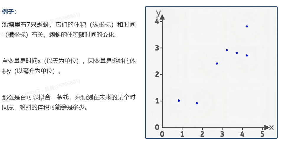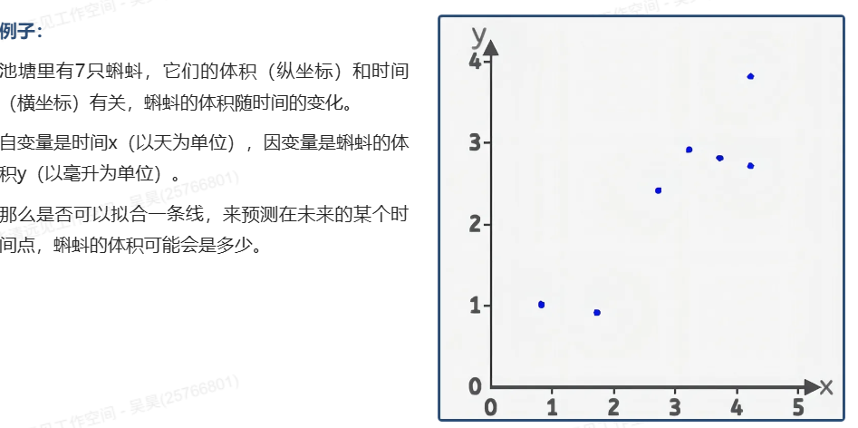 由上图得知,w=0.8的损失函数值,拟合效果更好,于是根据这些散点,我们拟合出了一条直线y=0.8x,这样通过时间来判断蝌蚪生长体积和天数的关系。