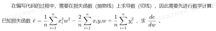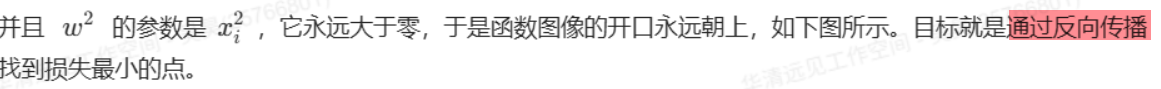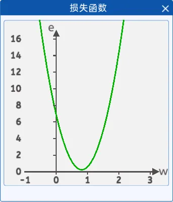 给出直线公式y=wx+b,令 b=0。在前向传播时,得到均方差损失函数,根据该表达式,可以发现,损失函数是一个关于w的一元二次方程: