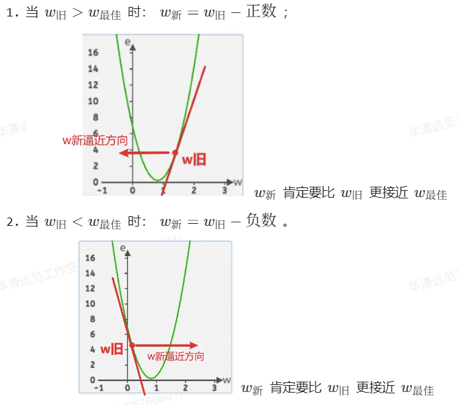 当固定值的正负确定后,就意味着w的更新方向确定了,比如w>0时,且固定值为正数时,w的值是不断减小的,w<0时,固定值为负数时,w的值是不断变大的。