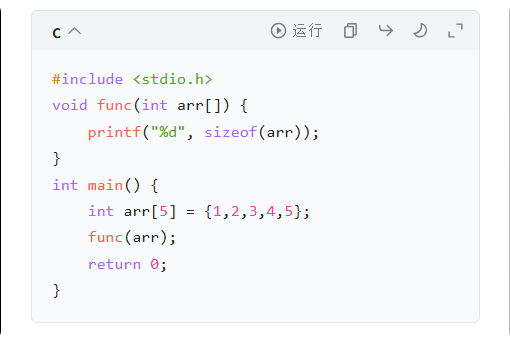 在函数内部(数组退化)中,sizeof(arr)得出的是指针的大小,arr++(普通指针)会使指针移动到下一个元素的地址
