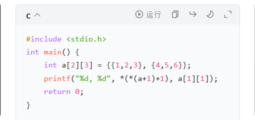 移动 2 个 int 单位,指向第二行第三个元素(值为 7)。- 解引用后得到 7。