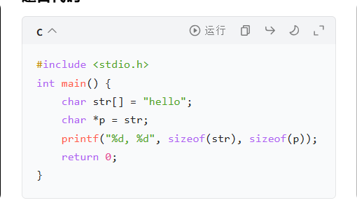 是字符指针,指针大小取决于系统位数。- 32 位系统占 4 字节,64 位系统占 8 字节。