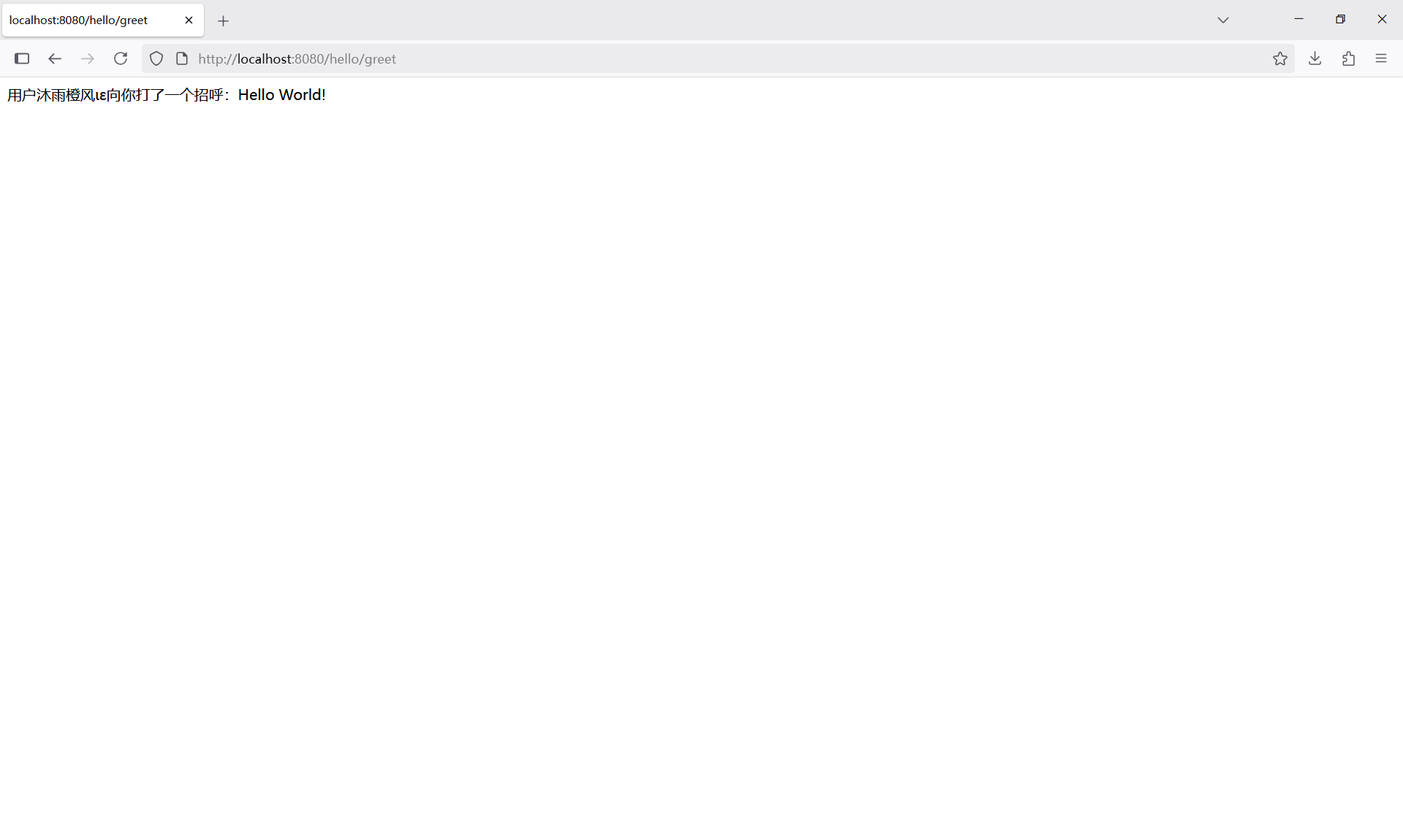 在浏览器上访问http://localhost:8080/hello/greet,如果能看到下面的内容,就是nacos整合完成了