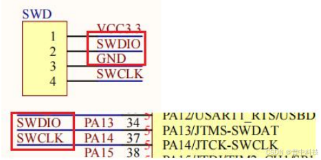 上图 SWD 接口为 2.5mm 间距的排针,与 STM32 的 SWD 接口连接。SWD 接口管脚排列顺序是按照普中 ARM 仿真器来的,可以非常方便对接。