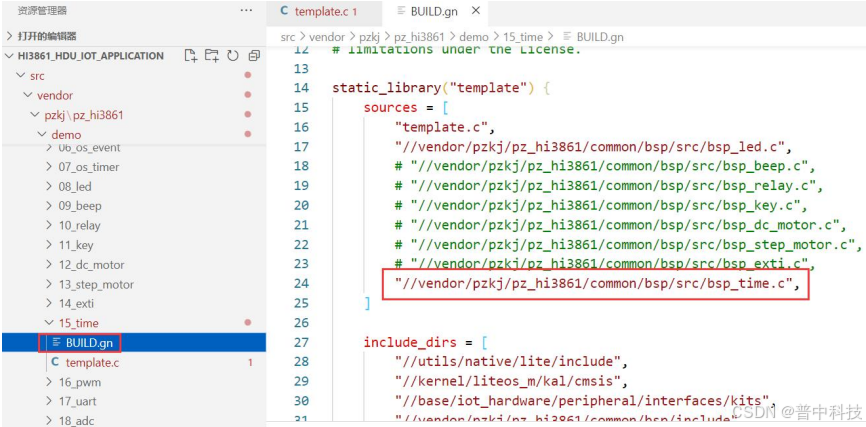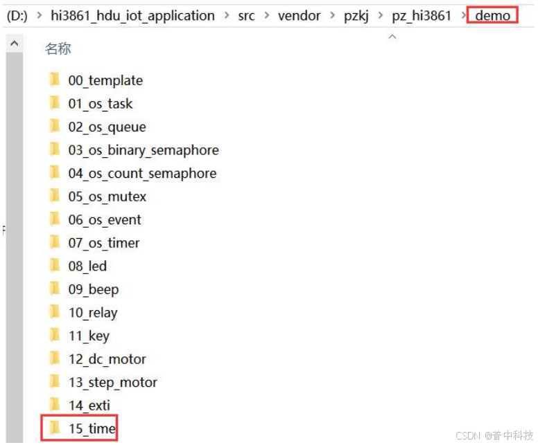 将前面章节创建好的工程模板,复制一份,重命名为15_time,如下所示: