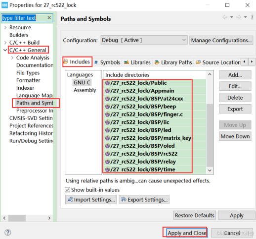 添加完以后,如果有自己创建的文件夹,且文件夹内有头文件,工程中调用了该头文件,必须记得在工程中添加头文件路径,同时将源文件与工程关联一起,如下图所示: