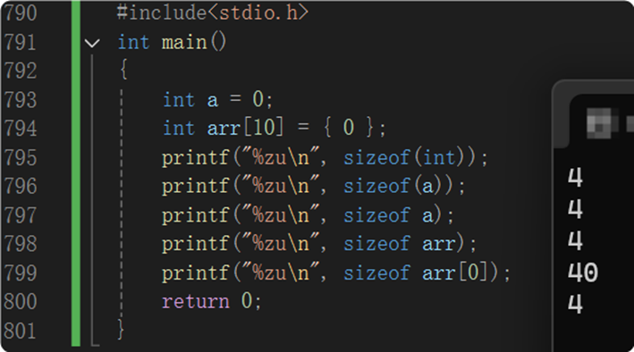 前三行代码在本质上是相同的,a可以去括号,但int不能去括号。当打印数组的占用空间时,大小等于元素数×每个元素所占的空间大小,数组中元素大小也能打印。