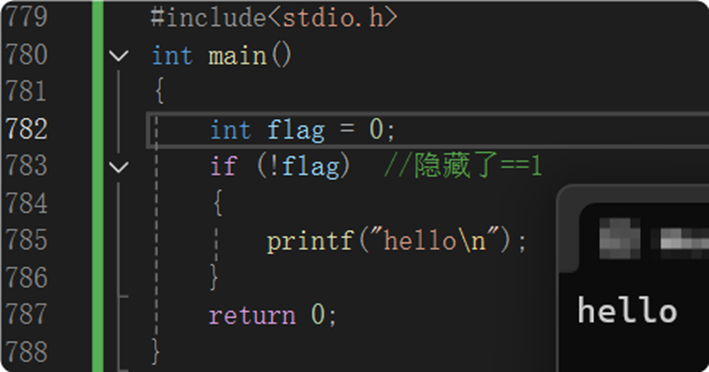 !flag:把flag取逻辑反(真/假)。在C语言中规定0为假,非0为真。故在上述代码中!flag为1。