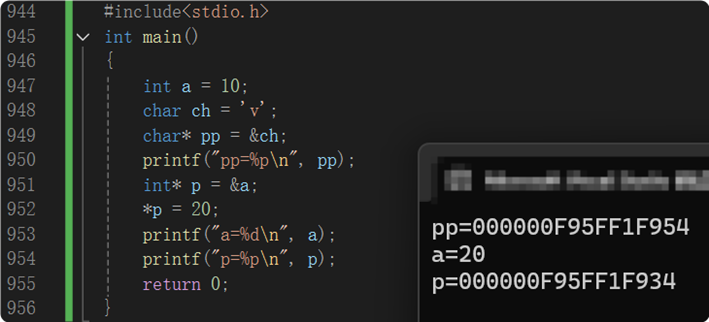 int* p = &a;:&是取地址操作符,*说明p是指针变量,int是根据a(int)来定的,如果是字符类型即为char。打印指针变量时用%p做占位符。