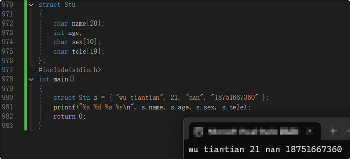 用struct来定义结构体Stu是结构体的名字。{}里面的是该结构体中包含的成员。调用时用:结构体名.成员(如s.name)占位符根据成员的类型来确定。