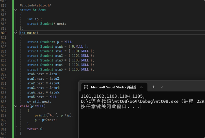 指针域:用于指向下一个节点的首地址,类型为结构体指针,结束指向空指针。