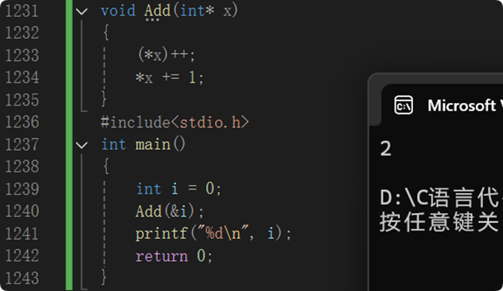 通过传递一个指针到函数中,使得函数与外部建立起真正的联系,可以修改实参的值。例子如上。