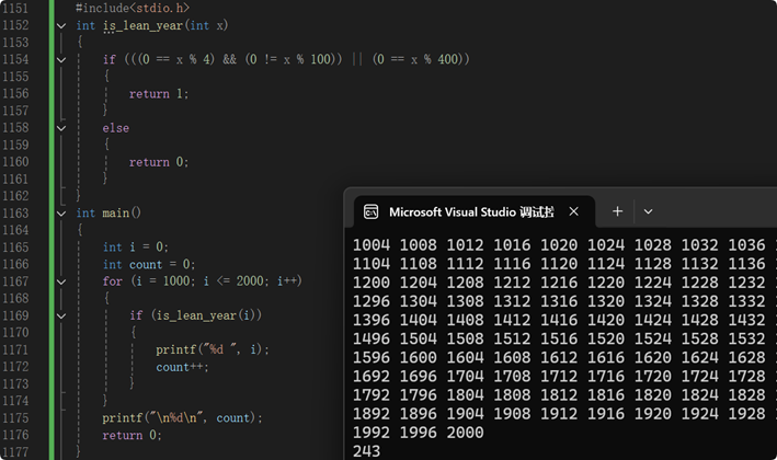 判断闰年(1、能被400整除 或(||) 2、能被4整除不能被100整除):