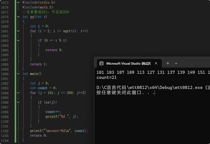 上述代码中sqrt()是用于开平方的函数输入double类型的数据,返回double类型的数据,头文件为math.h。