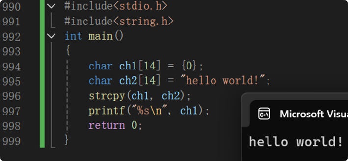 库函数strcpy(ch1,ch2)用于把字符串ch2的内容拷贝到字符串ch1中(包括’\0’),它的头文件为string.h。