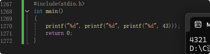 上述代码中就是链式访问的体现,就好比工厂加工上游工厂加工的产品则是下游工厂的原材料。printf()函数的返回值是要打印目标的个数。