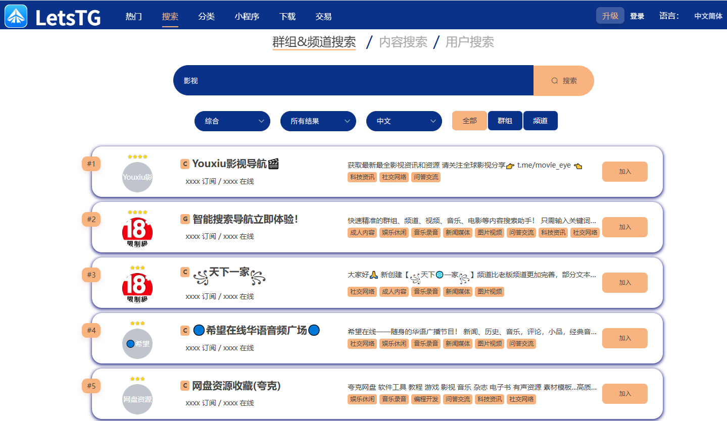 这里我用到的就是 @letstgbot —— 它不是影视资源站,而是一个安全的中文群/频道搜索机器人,通过它能定位到公开的影视分享社区。这样一来,既避免了乱七八糟的虚假网站,又能更高效地找到资源。