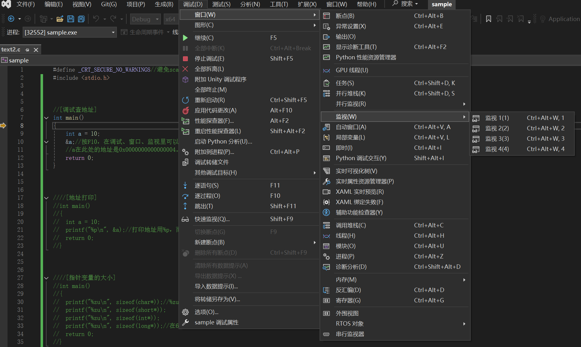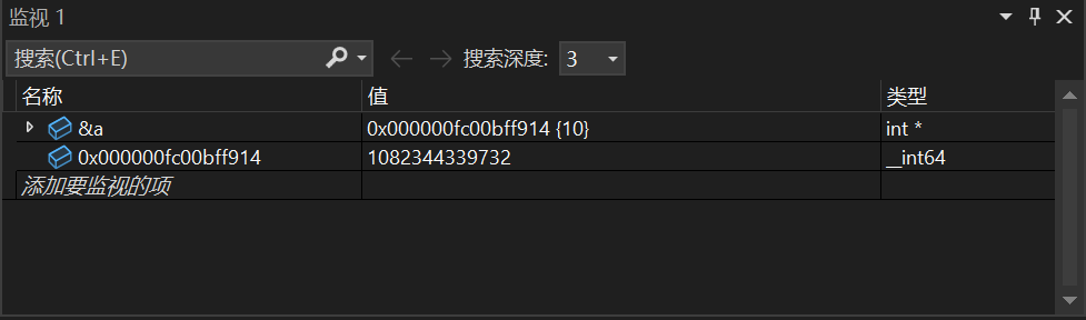&a;//按F10,在调试、窗口、监视里可以找到&a的地址