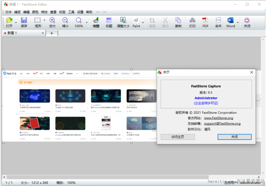 FastStone Capture:编辑功能兼顾 “实用与专业”—— 不仅有基础标注工具,还支持颜色调整(亮度 / 对比度 / 饱和度)、“光滑毛刺处理”(优化截图清晰度)、水印添加(文字 / 图片水印,可设透明度)、图片转 PDF 等。编辑完成后可直接打印、邮件发送,甚至批量处理多图,更适配需要规范输出的工作场景(如产品文档、报告截图)。