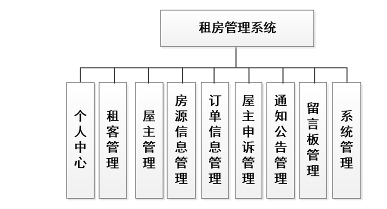 本租房管理系统有管理员,租客,屋主三个角色。管理员功能有个人中心,租客管理,屋主管理,房源信息管理,订单信息管理,屋主申诉管理,通知公告管理,留言板管理,系统管理等。屋主发布房源信息,租客预约看房,生成订单。因而具有一定的实用性。