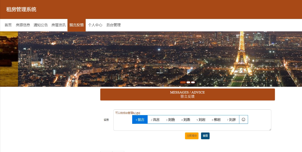 用户登录可以进行留言反馈操作。界面如下图所示: