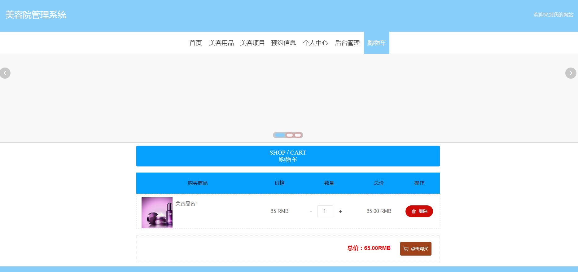 实现普通用户权限的美容用品功能,其运行效果见下图。普通用户查看美容用品,在本页面购买美容用品,或把美容用品添加购物车。
