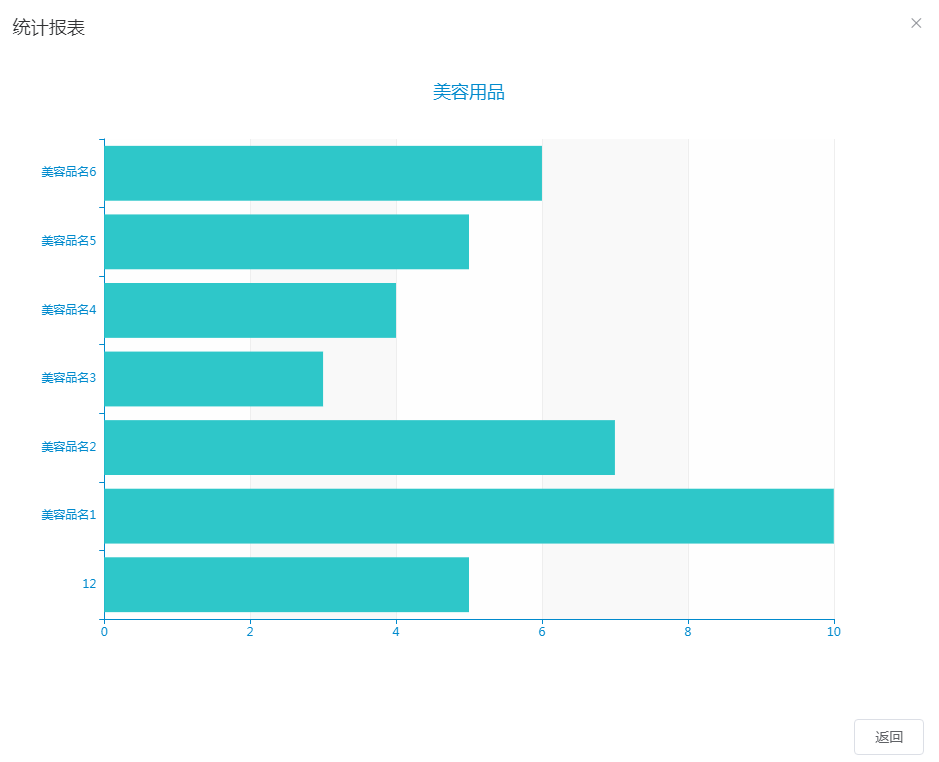 实现管理员权限的销量信息统计功能,其运行效果见下图。管理员通过销量统计报表查看各种美容用品的销量信息。