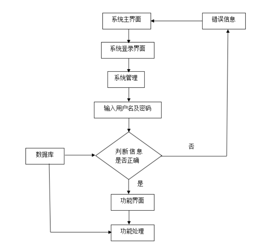 要访问美容院管理系统,需要符合要求的身份,证明访问者身份的信息就是在登录界面需要填写的信息,其中有用户名,有密码。在登录界面,系统后台也有专门编写的安全验证机制,只有信息匹配的访问者才有资格进入系统。具体流程见下图。如果访问者提供的信息在数据库中没有记录,就表明该访问者没有权限,也就无法享受系统提供的服务。