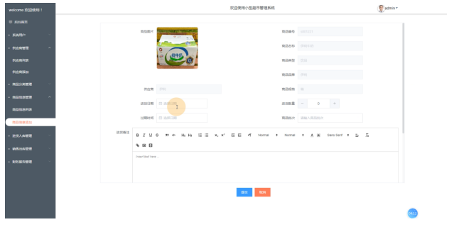 测试流程 | 1)搜索查看商品信息,点击添加进货入库。 2)填写添加内容,提交入库信息。 |