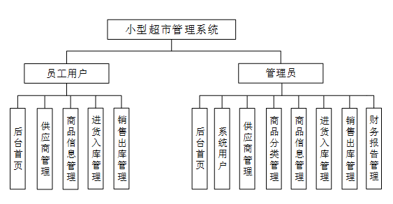 本小型超市管理系统旨在满足员工用户和管理员两大角色的不同需求,通过实现多个功能模块来优化超市的日常运营。系统核心功能包括商品信息管理、供应商管理、进货入库管理、销售出库管理以及财务报告管理等,确保每个用户角色都能高效地执行其职责范围内的任务。具体功能描述如下: