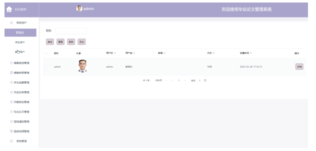 本研究所开发的毕业论文管理系统经过严格的测试与优化,在实际应用中展示了显著的效果。系统有效简化了毕业论文管理的各项流程,减少了人工操作错误的可能性,并极大地提高了工作效率。同时,系统也为各参与方提供了更为直观的数据分析与决策支持工具,有助于促进教育资源的合理配置与使用。综上所述,本研究不仅解决了当前高校面临的实际问题,也为进一步推动教育信息化进程贡献了一份力量。