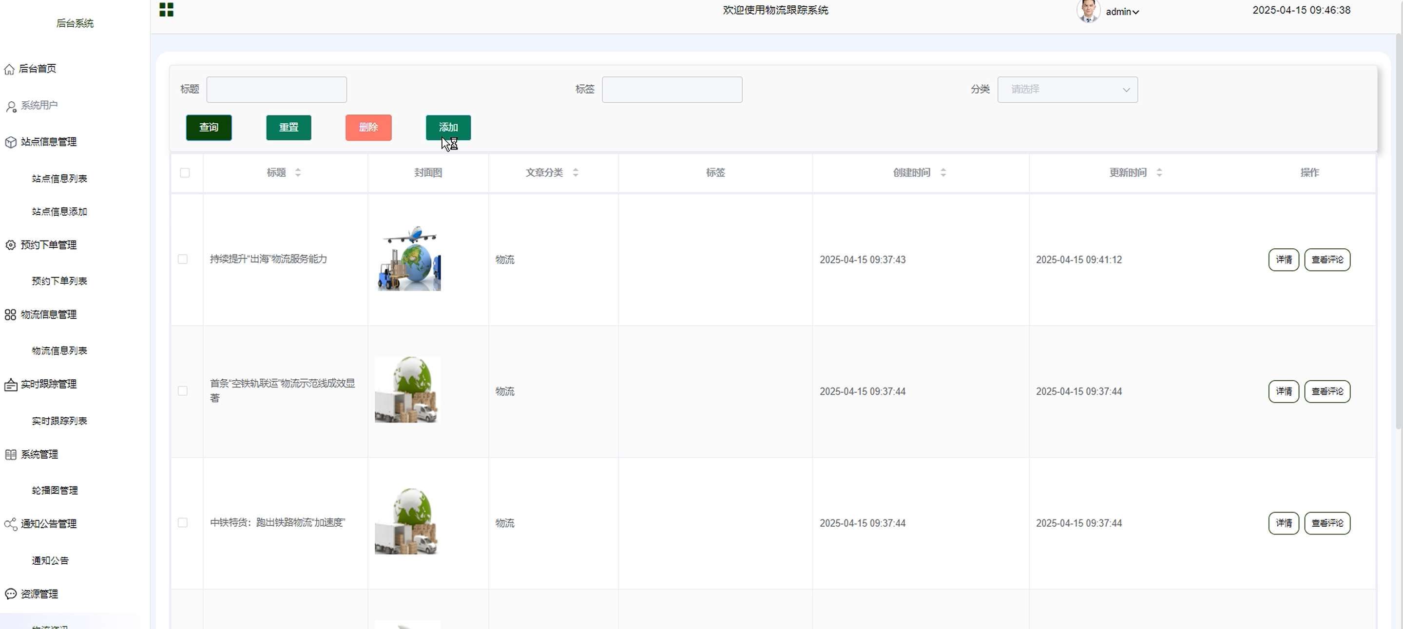 管理员可以在新闻资讯管理页面上传和管理平台所需的图片、文档等信息。管理员可以对资讯进行分类、删除或替换,确保平台内容的及时更新。其界面图如下。