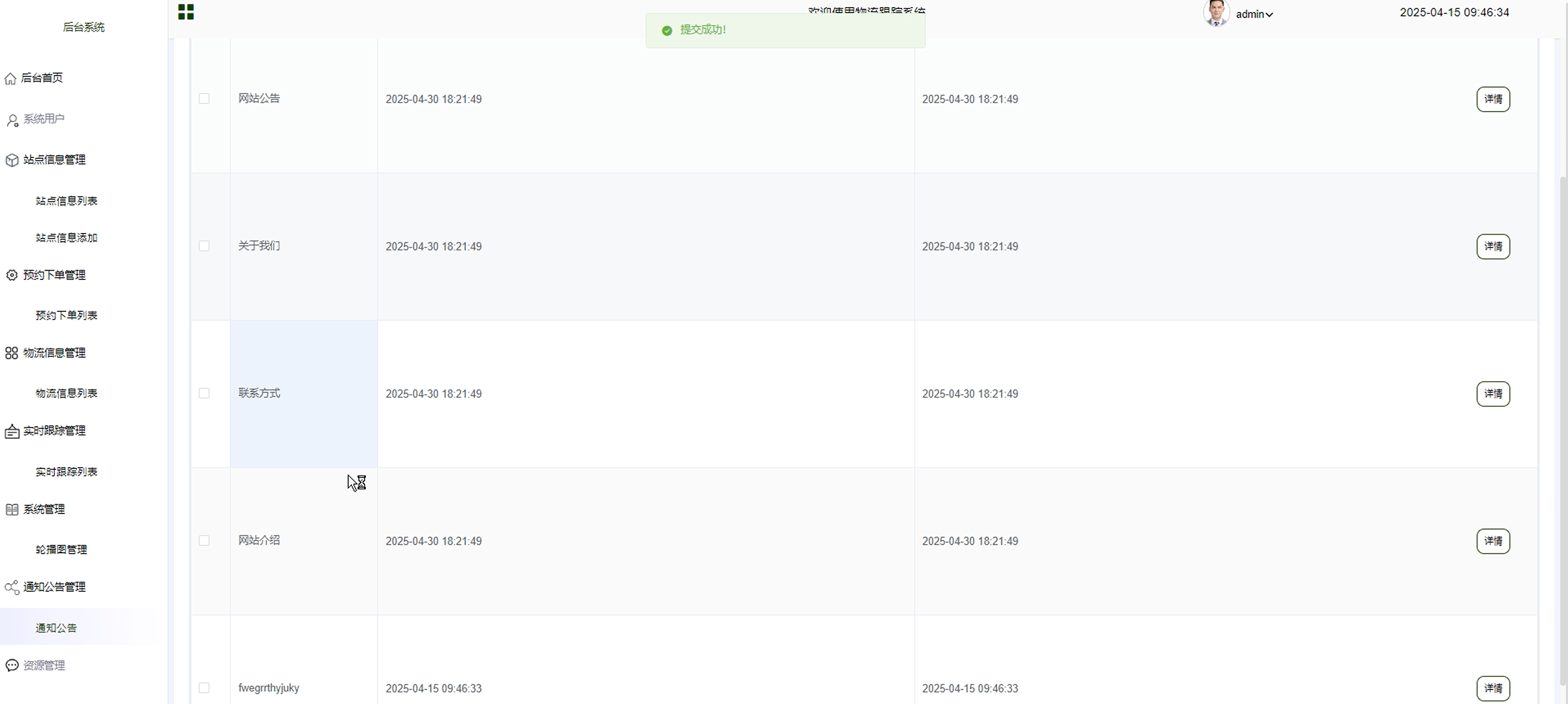 管理员可以发布、编辑和删除公告信息,确保用户及时获取重要信息。其界面图如下。