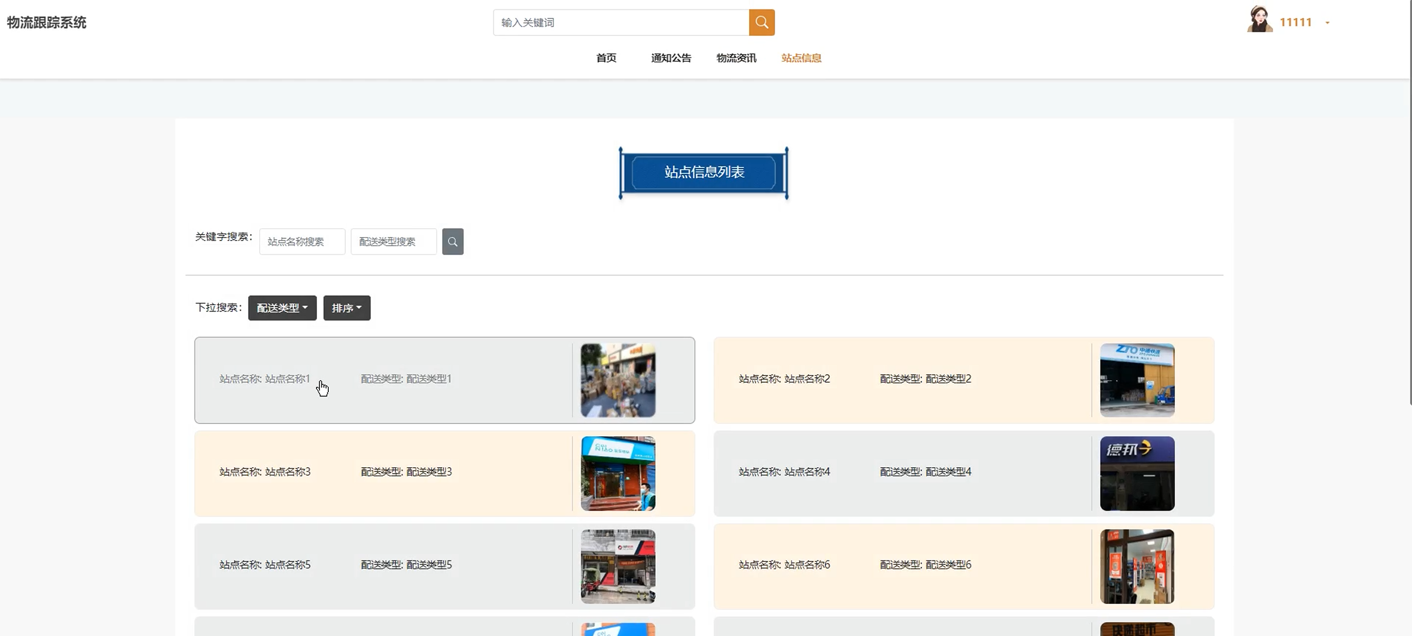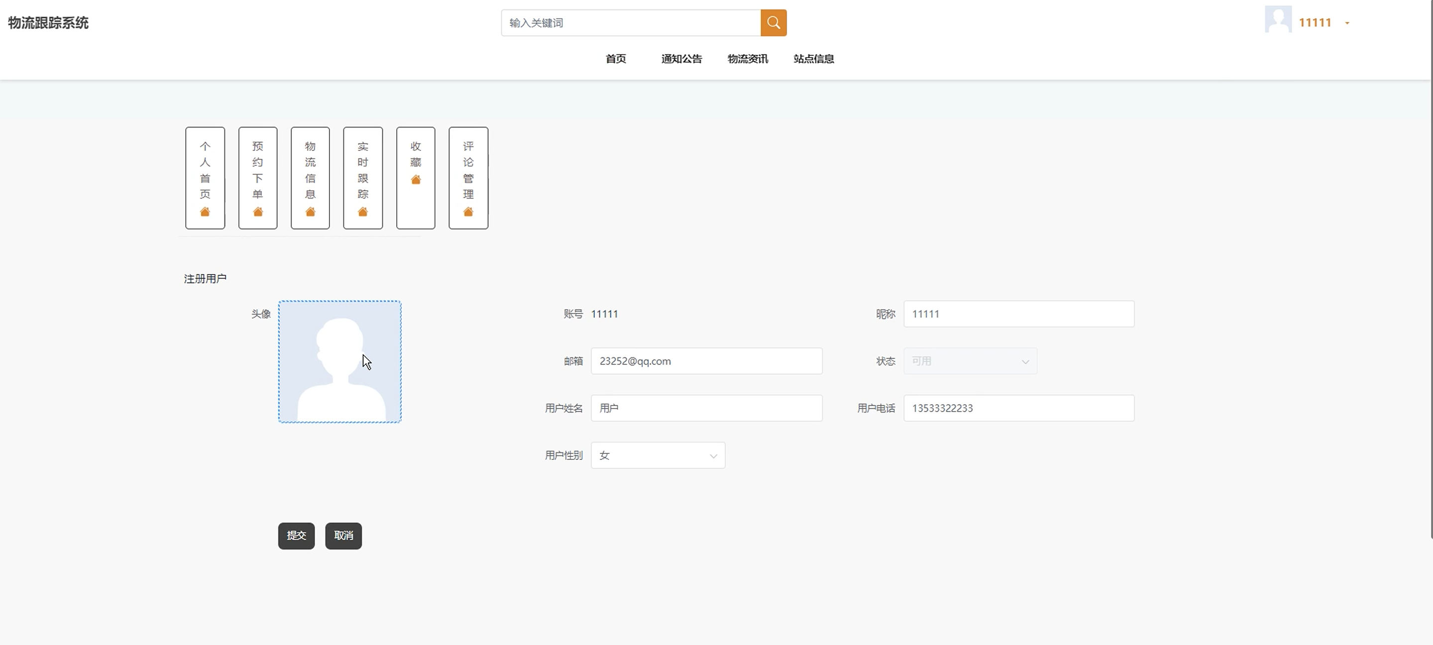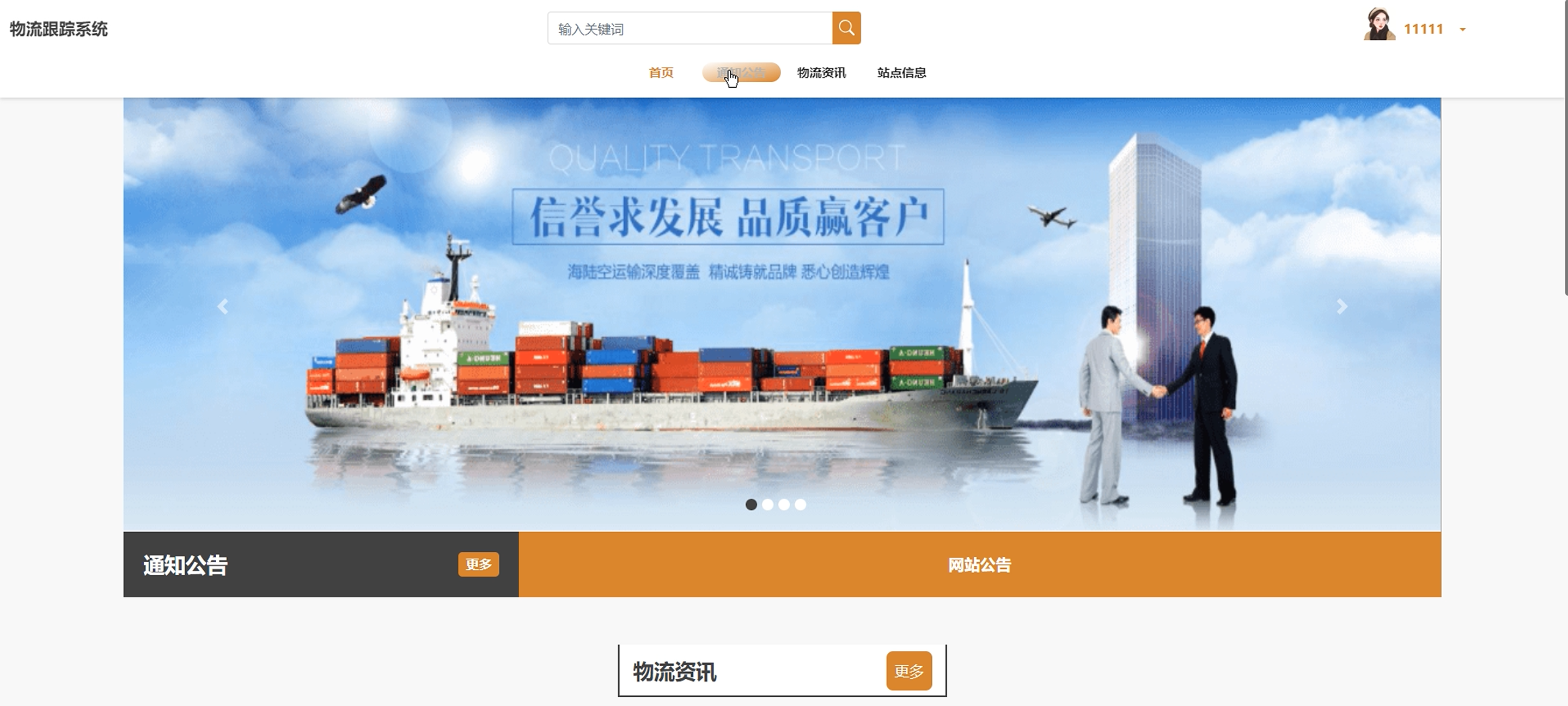 用户:首页、通知公告、物流资讯、站点信息、我的(个人首页、预约下单、物流信息、实时跟踪、收藏、评论管理)等功能。