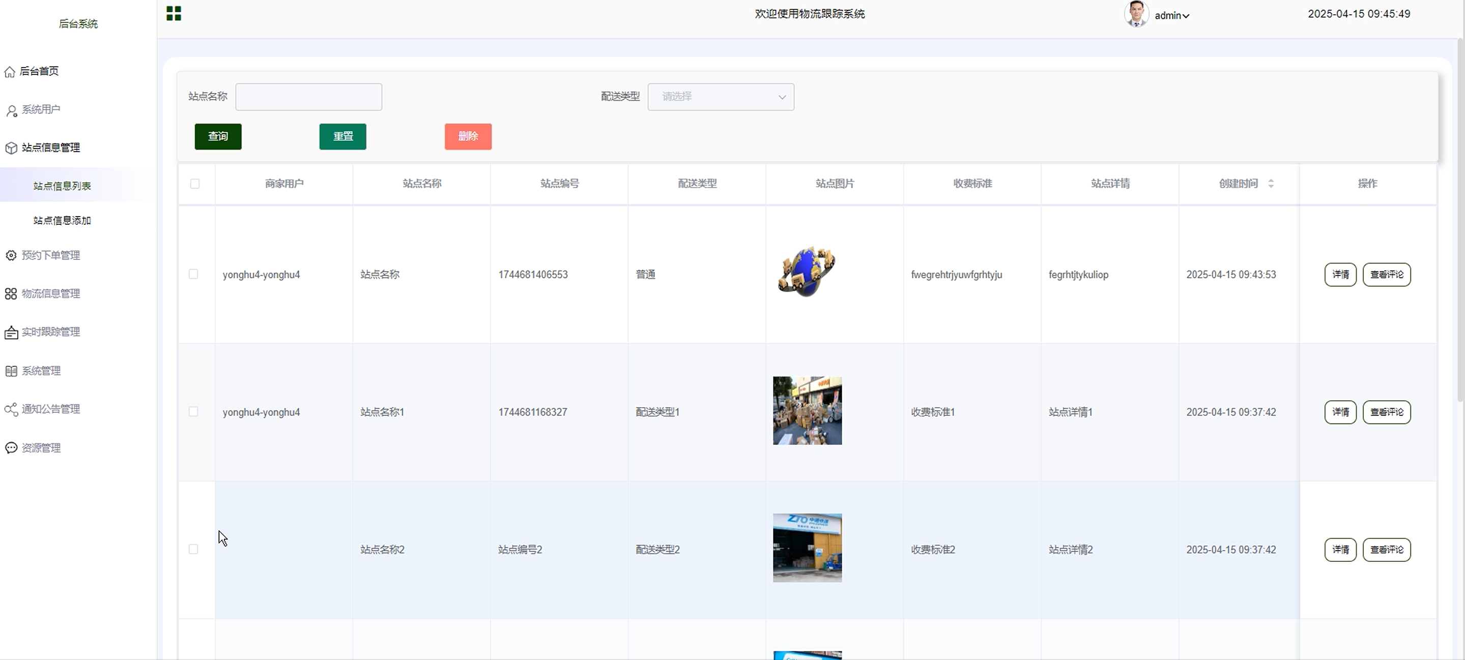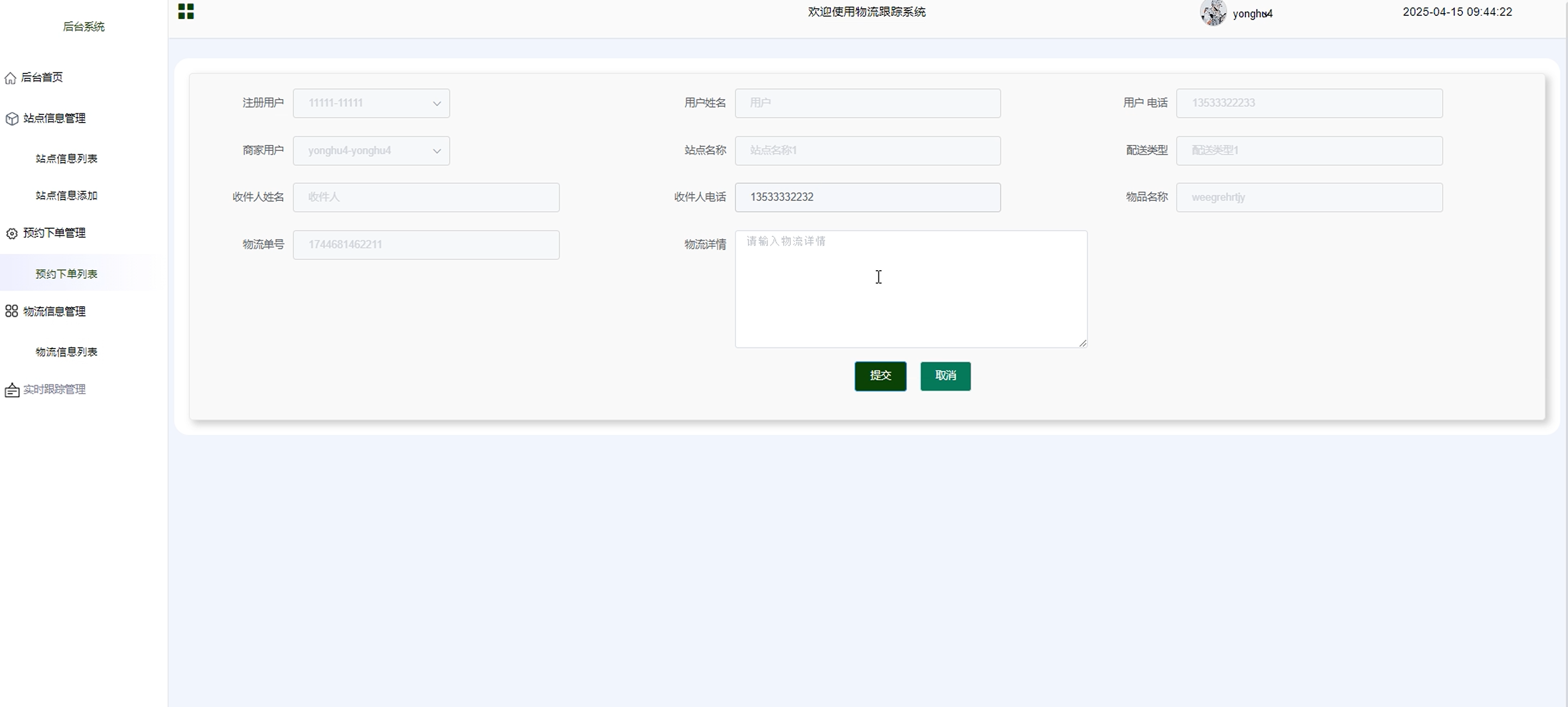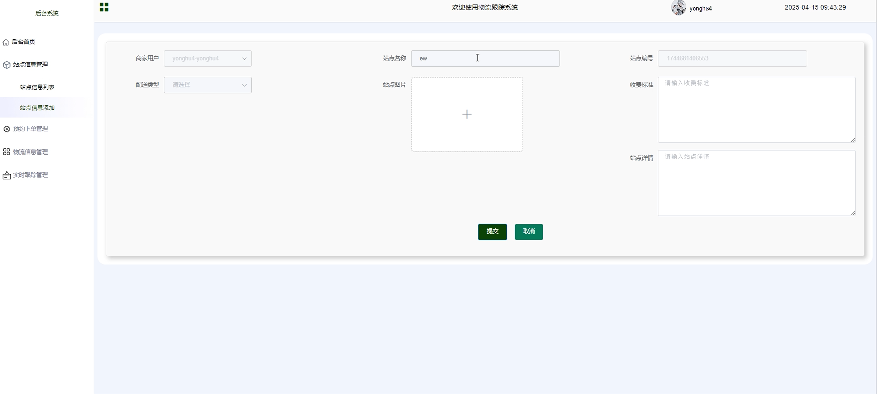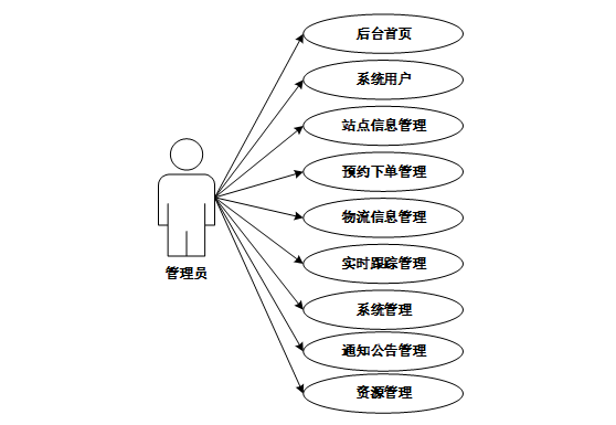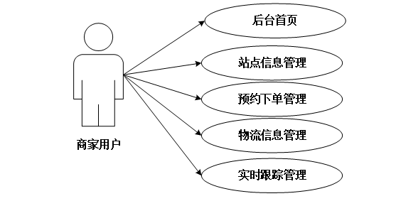 商家用户:后台首页、站点信息管理、预约下单管理、物流信息管理、实时跟踪管理等功能。