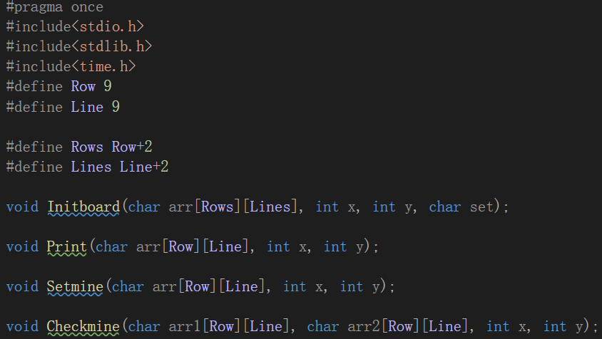- game.h //文件中写游戏需要的数据类型和函数声明等