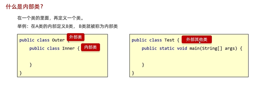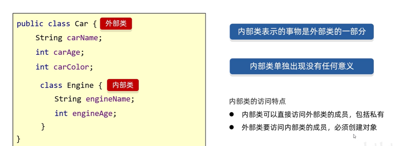 - 外部类和内部类是两个不同的空间,但内部类有着外部类的地址
