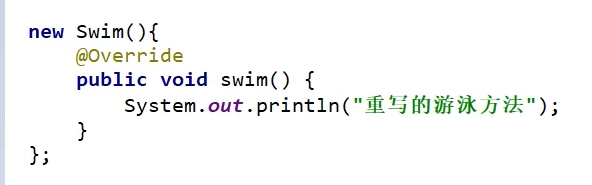 - 这个无名类实现了Swim接口/继承了Swim类,并重写了方法