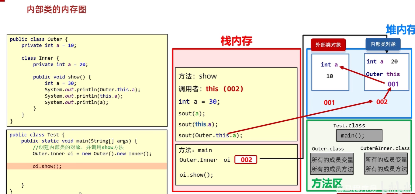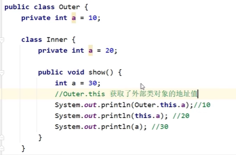 - a是局部,this.a是本类开始,Outer.this.a是外部类