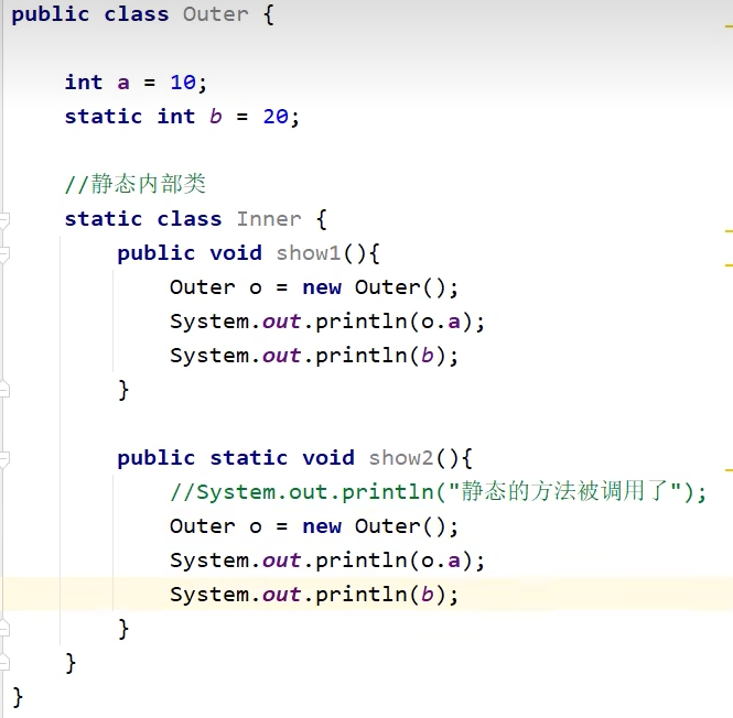 - 而非静态的需要创建外部类对象(a)