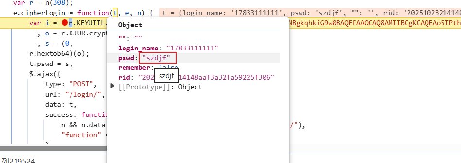 xhr断下来的栈没有加密参数,先往上一个栈看: