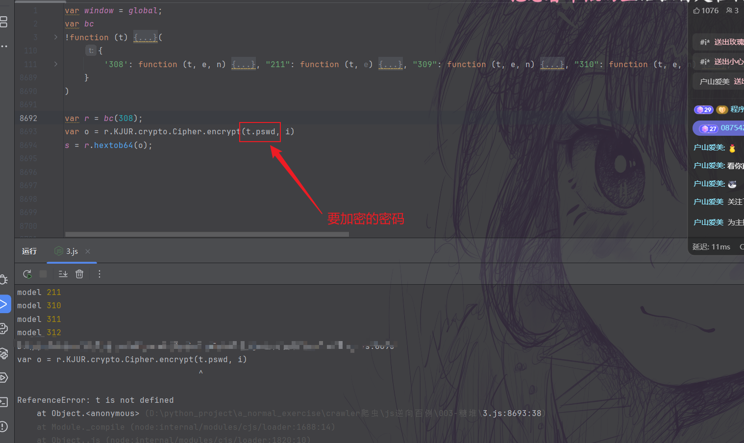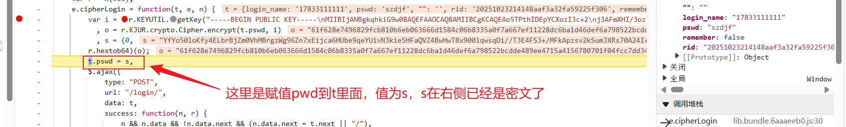上一个栈加密参数是传过来的,咱直接看最下面一个栈: