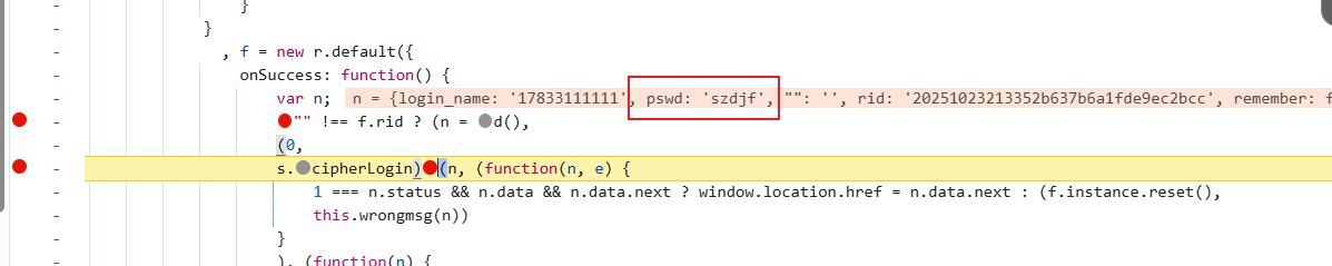 这里n是密文但是不是外部传入的,很可能是在函数内部加密之后这里的n同步变成了密文,我们打上断点看看: