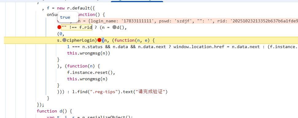 啥也没有,重新触发接口(因为我们虽然在控制台啥也没运行出来但是为了防止有影响,需要重新触发接口),进函数: