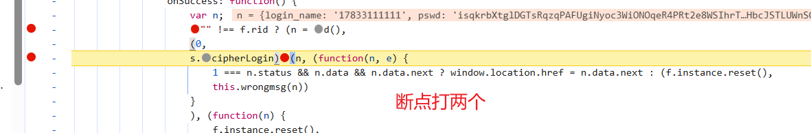 防止运行过去我们打两个断点,然后触发,往下运行一下: