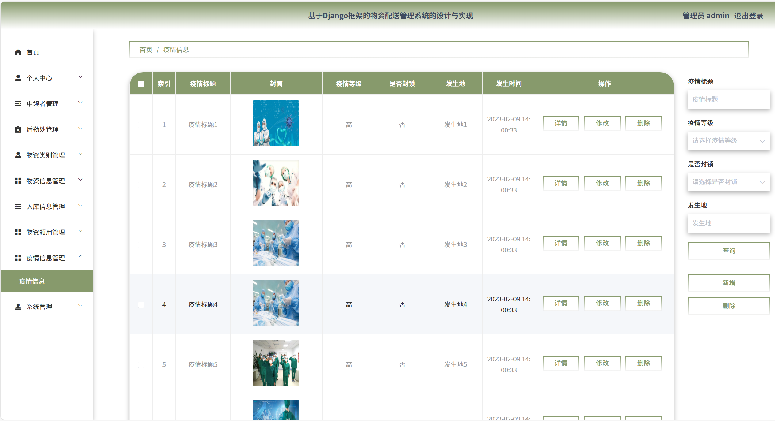 物资配送管理系统设计的目的是为用户提供物资信息等方面的平台。
