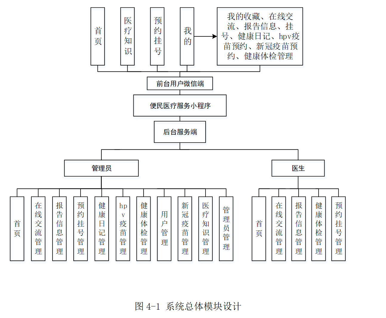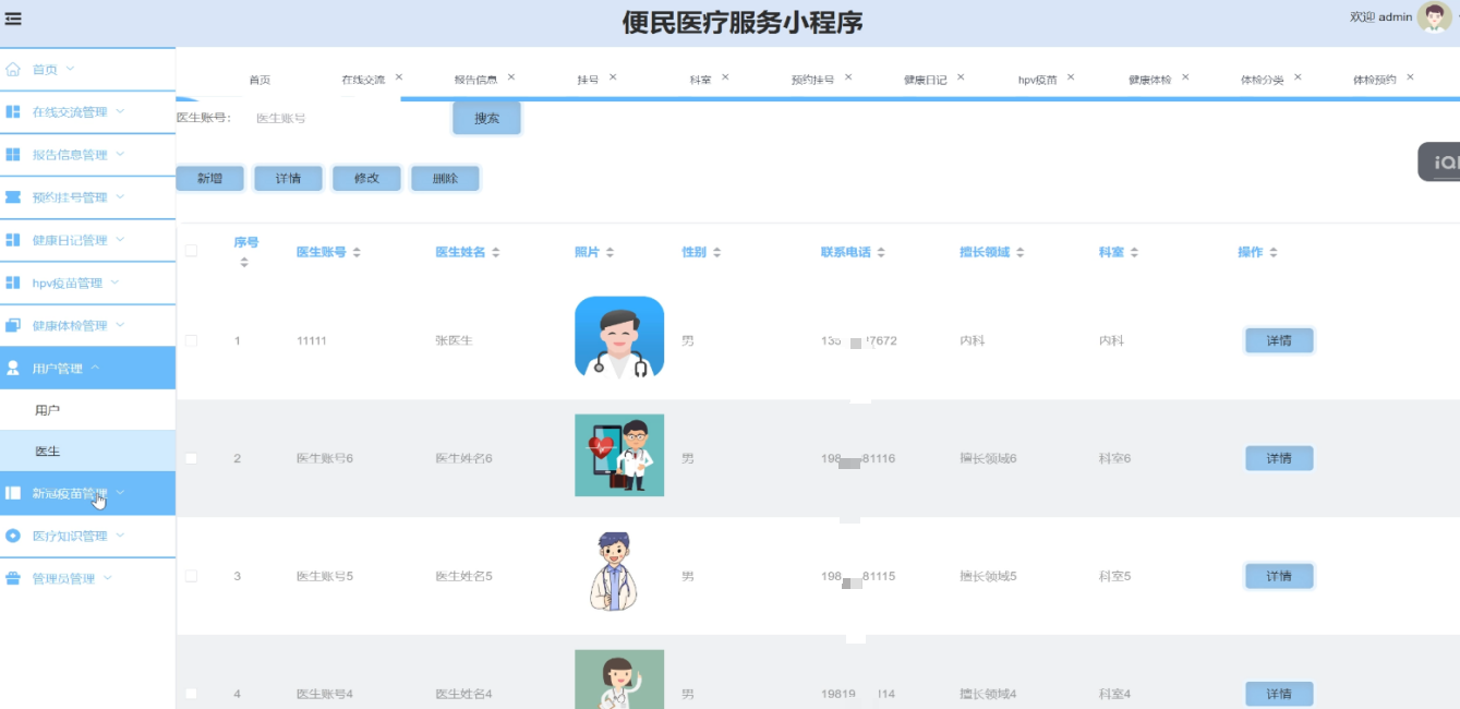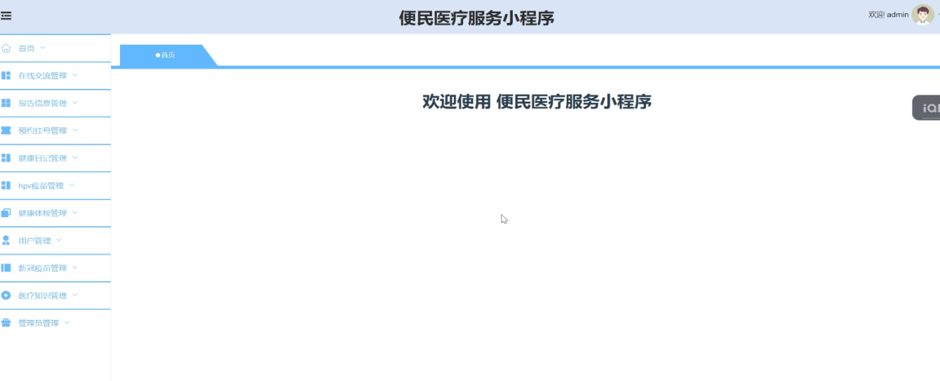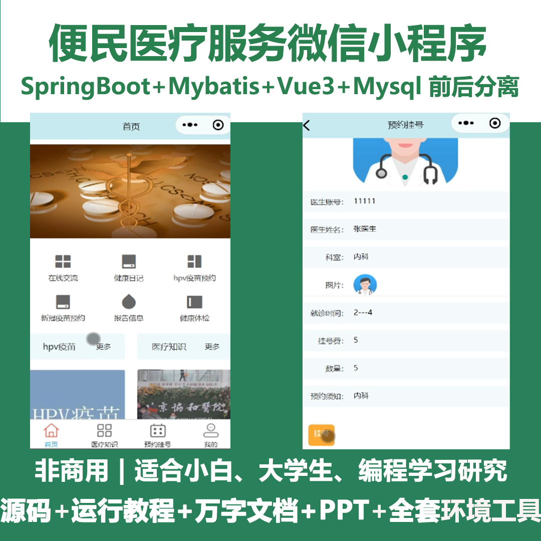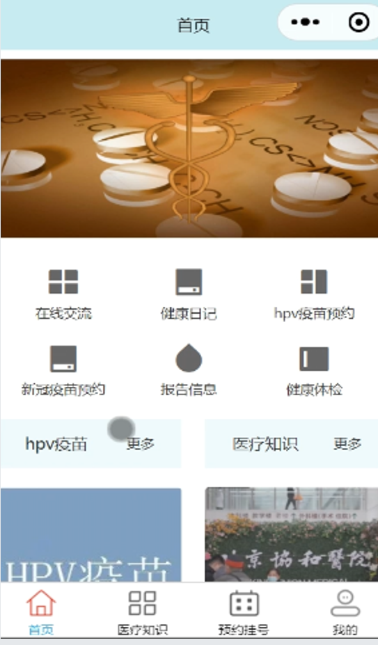 本项目是一款便民医疗服务微信小程序,旨在优化传统医疗管理流程。系统集成了用户注册登录、报告查询、在线预约挂号、健康日记记录、HPV与新冠疫苗接种预约、健康体检管理以及医疗知识科普等核心功能。