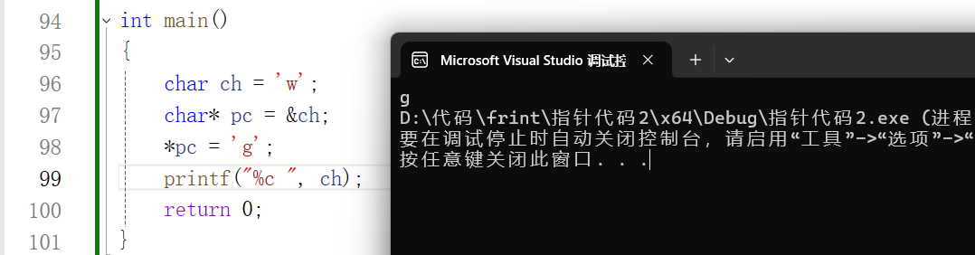 例: **ppa = 30; /等价于*pa = 30; /等价于a = 30;