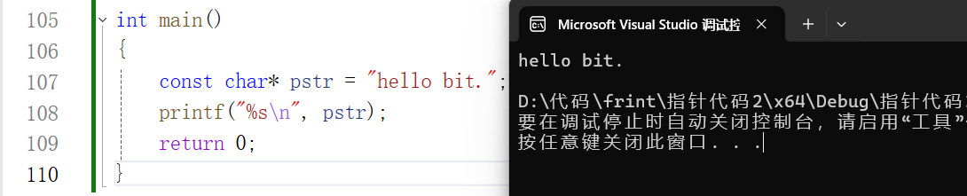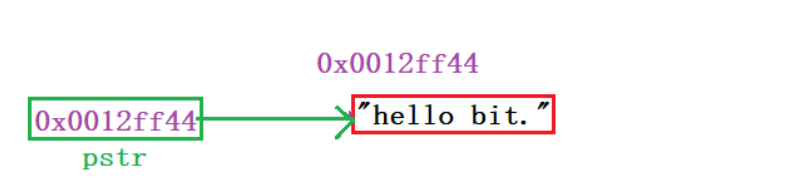 代码 const char* pstr = "hello bit."; 特别容易以为是把字符串 hello bit 放到字符指针 pstr ⾥了,但是本质是把字符串 hello bit. ⾸字符的地址放到了pstr中。