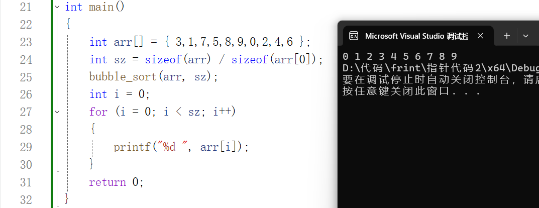 冒泡排序的核⼼思想就是:两两相邻的元素进⾏⽐较。